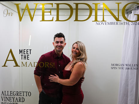 We offer free designer templates with every photo booth rental. We currently offer 2x6 photo booth templates and 4x6 photo booth templates. We design your photo booth template with your color theme in mind whether it be from emerald green and gold colors for a sweet 16 birthday party or pink/gold and white for a high school prom. Our design team has more than 60 years combined experience in the field. We team up with our clients to gather key information for their event and design something beautiful to cherish for a lifetime. Our custom photo booth templates paired with our high-quality equipment from our Mirror photo booth will give you a picture-perfect photo every time.